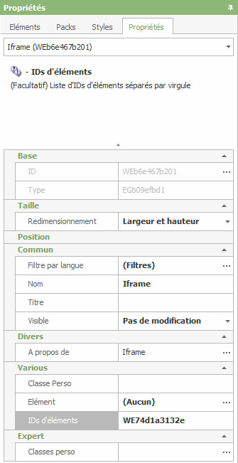 IDs Eléments : Vous pouvez indiquer l'ID de l'élément de votre choix.