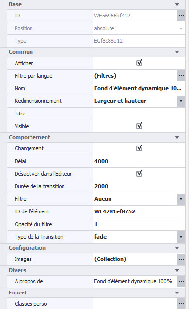 Le panneau d'éléments responsive a aussi un élément lié. Il s'agit de l'élément Fond d'éléments dynamique 100%.